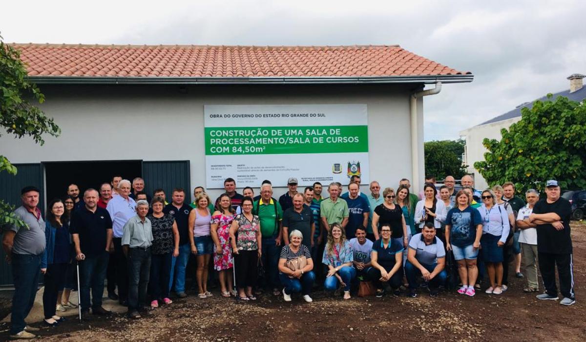 Foi inaugurado na manhã de hoje, dia 27, no município de Vera Cruz, um espaço de 84,5 metros quadrados, fruto da Consulta Popular 2016/2017, que servirá como unidade de recebimento, beneficiamento, embalagem e distribuição de hortifrutigranjeiros, além de servir para cursos e capacitação para agricultores. O prédio foi construído anexo a Feira Rural, onde também funciona a Cooperativa Mista de Agricultores Familiares de Vera Cruz, a Coopervec, que ficará responsável pela administração do espaço. O valor global do investimento foi de R$ 94.467,13, sendo R$ 71.498,42 da Consulta Popular e R$ 22.969,41 contrapartida do município.